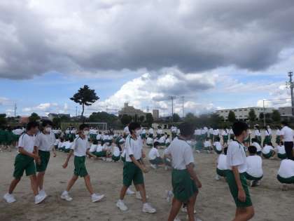 本日の6時間目に、竜神中学校開校50周年記念の写真撮影が行われました。放送を合図に、クラスごとに時間差でグラウンドに集合。場所の確認をし、その後、ドローンにて撮影が開始。手を振ったりウェーブをしたり、最後は上空80メートルからの全校写真が撮影されました。今日の記念写真は開校50年の記念とともに、生徒のみなさんの記憶にもきっと残ることでしょう。