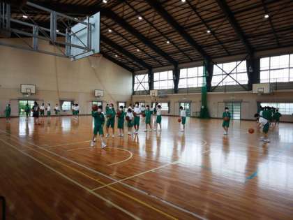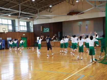 本日3時間目に、1年生は体育の授業を屋内で行いました。体育館ではバスケットボールを行いました。シュートが決まると喜ぶ生徒や、なかなかゴールが決まらなくて苦戦する生徒の様子が見られました。竜文館では、ダンスを行いました。映像と音楽に合わせてとても楽しそうに踊っていました。雨で下がった気分もきっと明るい気持ちになれたと思います。