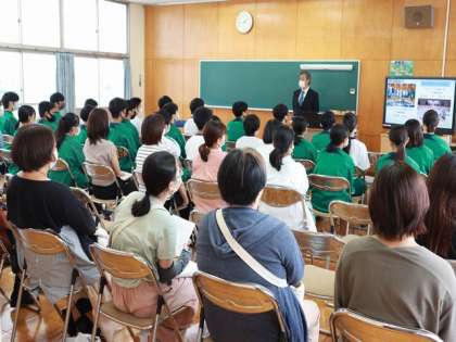 本日はたくさんの高校の先生方をお招きし、3年生の生徒と保護者の方を対象に高校説明会を行いました。各高校の特色や部活動など、様々なことを知ることができ、進路について深く考えるとてもよい機会になりました。