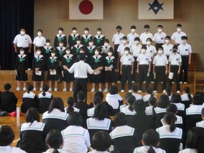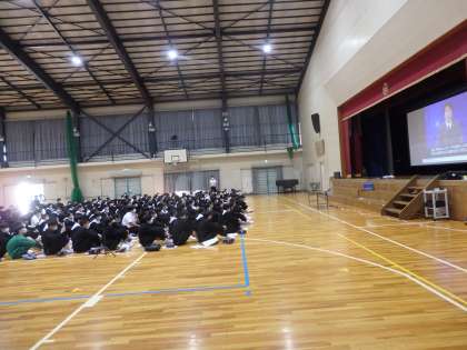 本日5時間目の体育館。来週の虹竜祭に向けて、3年生が合唱の合同練習会を行いました。美しいハーモニーに来週の本番がさらに楽しみになってきます。続いて6時間目の体育館では、2年生のSNS研修会がありました。