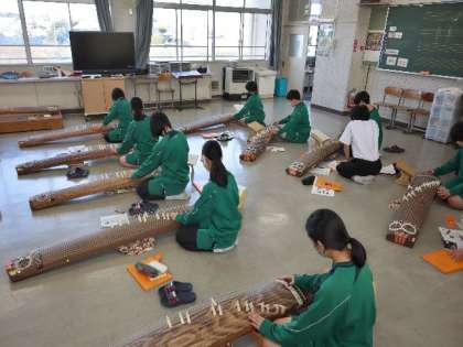 日本の伝統楽器に触れる貴重な機会ができ、生徒にとって箏が「何かできる楽器」の一つとなったことでしょう。
