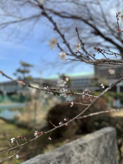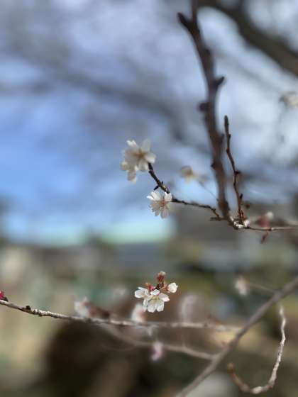 先日までの寒さが少し和らいだせいか、桜の花が咲いているのを見つけました。