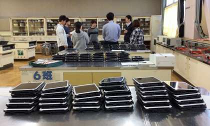 本日からいよいよ1年生も市内全域でSKYMENUなどの全ての機能が利用できるようになります。学習に、生徒会活動にどんどん使っていきます。1年生のタブレットは、今、みんなの下校後に配布のための最終確認をしてくれています【写真】。もう少しだけ待ってください。