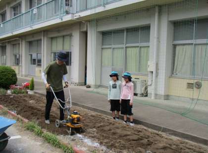 5/5 今年も挑戦!緑のカーテン 公開日 2023/05/05 更新日 2023/05/05 学校行事 毎年、暑さ対策で緑のカーテンを育てています。今年は朝顔を育てる予定です。小さな監督者のもと、校務主任の長坂先生が花壇を耕しています。色とりどりの花が咲き乱れることを今から楽しみにしています。