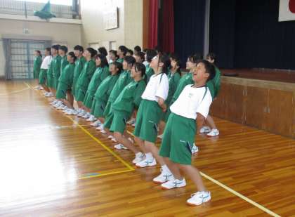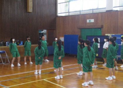 関わり合いながら育ってほしい。そんな願いを込めて今年度は縦割りの団での応援を行います。上級生のリードで応援の練習中。現3年生はコロナの関係で全くの未経験なので、人一倍努力しています。