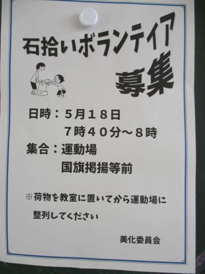 5/18 闘竜祭 感動への道(14)石拾いボラ 公開日 2023/05/18 更新日 2023/05/18 学校行事 石拾いボランティアの募集に、こんなに多くの子たちが集まりました。3mm以上のれきを拾うというミッションでしたが、バケツにたくさん集まりました。小さな小石ですが、この一つでもしかしたら大きなけがを一つ防止できたかも知れません。生徒の気持ちに感謝します。