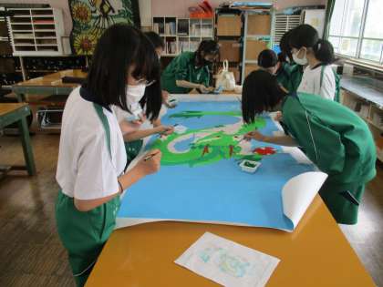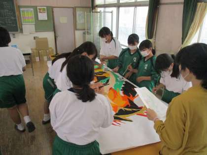 美術部の子たちが、必死に看板を作っています。4月に入ってからスローガンを決め、図柄を考え、色を塗るという手順のため、時間が本当にありません。でも、一心に取り組んでいる姿に感動します。