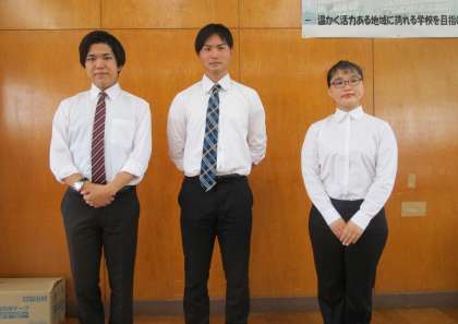 5/29 3名の教育実習開始! 公開日 2023/05/29 更新日 2023/05/29 お知らせ 5月29日(月)から3名の教育実習が始まりました。1名が2週間、2名が3週間の実習となります。3名とも1年生のクラスで生活することになります。 教科とクラスは、保健体育(1年2組)、音楽(1年1組)、社会(1年6組)です。