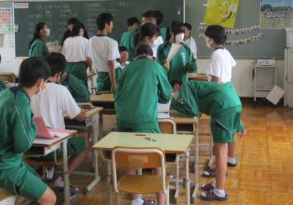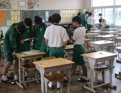 放課のわずかな時間を使って、最後の確認をしています。席を立って仲間と解き合ったり、自分の席で気持ちを整えたりと、さまざまです。