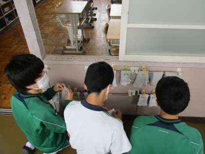 「直せ!」と整頓ができていない学級を教師が指導することは簡単ですが、それでは受け身な生徒を育ててしまいます。生徒に芽生えた問題意識から、自治・自浄の力で生活を見直してこそ中学生です。時間はかかりますが、生徒の主体的な行動から生活が向上することを期待しています。