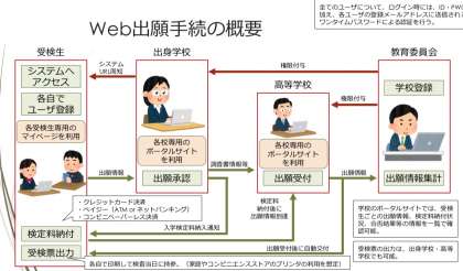 私たちも、まだ、出願方法の全容を知らされておりません。詳細が分かるのは9月以降になるかと思いますが、全容を把握したところで保護者と生徒向けに説明をします。また10月以降に試しに入力する機会を全県で統一して設けるそうです。