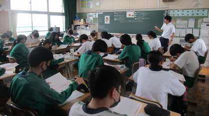 3年4組で道徳の校内授業研究を行いました。担任ではない先生が授業を行います。