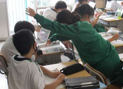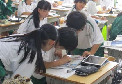 6/27 見つけたら教えてあげて(1−6社会科) 公開日 2023/06/27 更新日 2023/06/27 校長室から 社会科の授業風景。大切なことを見つけた子は先生に伝えるのではなく、友達に伝えます。こうした関わり合いを通して学び合いの土台ができてきます。 先生が「ここを見て!」と言うのは簡単ですが、それでは生徒の見つける力、伝える力を育てることはできません。じっと我慢し、伴走者として生徒の学びを支援します。