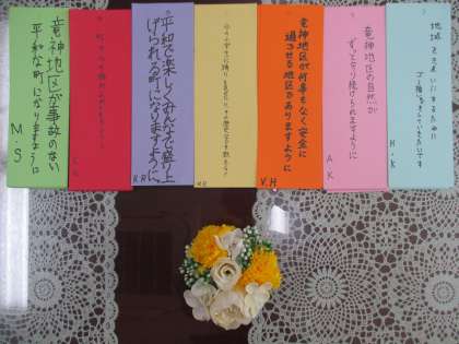 6/28 【貢献】七夕短冊を道徳の授業とつなげる 公開日 2023/06/28 更新日 2023/06/28 校長室から 土橋八幡社境内で行われるふれあい夏祭り(8月4日、5日)に七夕の短冊をプレゼントします。1年生が道徳の授業で「伝統や文化の尊重」「郷土愛」を学んだ後に、短冊に願いを書いたものになります。一人一人の思いがつまっています。 1年生のみなさん、ありがとう!