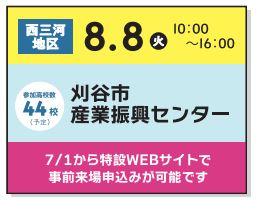 今年度、刈谷高校は夏休みの体験入学がありません。刈谷高校について知ったり、相談できたりできる夏の機会は、8月8日(火)の進学フェアしかありません。