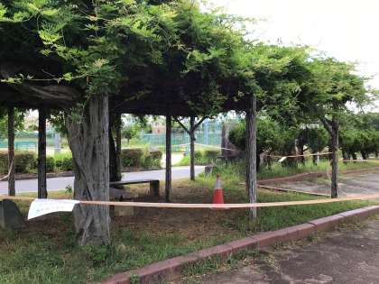 竜神中武道場横の藤棚の中に、ハンドボールほどの大きさのスズメバチの巣が発見されました。被害が出る前で本当に良かったです。職員に知らせてくださった野球クラブの方、ありがとうございます。