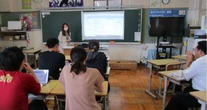 Sky Menu に新機能が追加されます。それに合わせ、中学校で研修会を開きました。参加した先生からは、「授業中にも使いやすそう」「使ったら面白いと思う」といった声が聞かれました。まだ皆さんの学習用タブレットには反映されていませんが、夏休み明けには使用できるようになります。