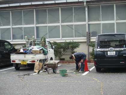 原因は、大型バスがロータリーを使うことによる重量オーバーではないかということですが、マンホールが夏休みに破損したため修理しました。