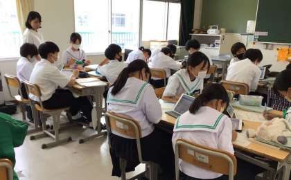 9/14 1年数学 文章題に挑戦! 公開日 2023/09/14 更新日 2023/09/14 校長室から 1年生は文章を方程式にする授業でした。タブレットのアプリSKYMENUを使って、解き方を共有し、さらにグループで学び合います。 先生は、生徒の対話をサポートします。