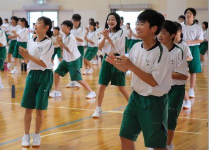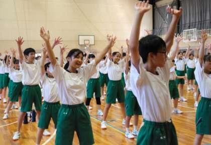 1年生は市商業観光課と連携し、おいでん踊りを体育ダンスの授業に取り入れています。また、総合的な学習の時間においでん祭りの歴史なども学んでいます。