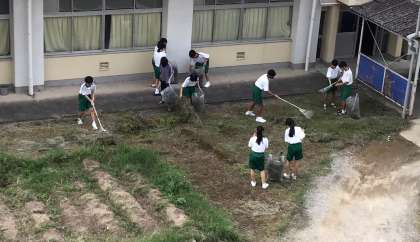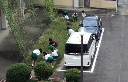 また、体育館清掃だった子たちが外の草取りを行っていました。特別な思いのある草取りになりました。