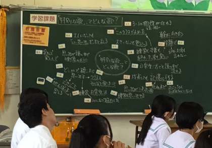 最後の合唱コンクールに向けて、3年生が自分たちにとって「特別な歌」ってどんな歌か話し合っていました。今、どうありたいか、そして大人になった時に何を思い出すのか、そんな心をふるわせる授業でした。足を止めてじっくり聞き入りました。