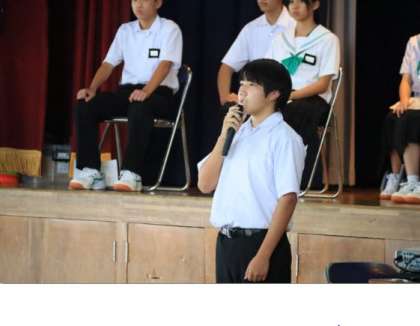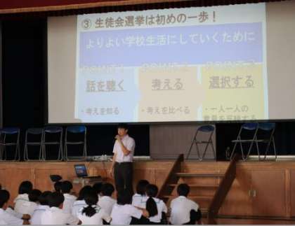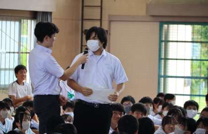 9/22 後期生徒会役員選挙(1) 公開日 2023/09/22 更新日 2023/09/22 学校行事 後期生徒会役員選挙を全校で体育館に集まって行いました。コロナによるオンライン演説と投票をこれまで行っていましたが、今回は立会演説と市が本物の選挙で用いている投票箱を使った選挙です。 最初に先生から「選挙とは」という主権者教育の話がありました。真剣に、かつ興味深く聞く姿がまるで授業のようでした。その後、委員長からの諸注意で演説に入ります。 その(2)に続きます。