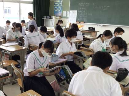9/24 1年 英語でコミュニケーション 公開日 2023/09/24 更新日 2023/09/24 生徒の活動 英語の授業には、時と場と状況に応じたコミュニケーションの評価項目があります。こうしたペア会話でも、声量・明瞭な発音・アイコンタクト・ジェスチャーなど、コミュニケーションに必要なスキルも学べます。英語の授業にはこんな魅力・価値もあります・