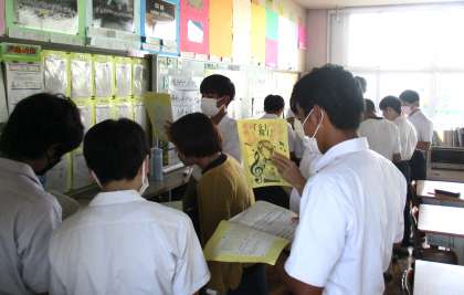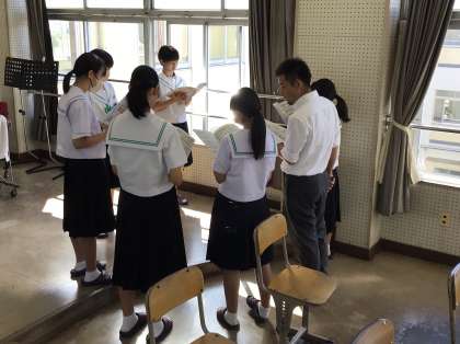 担任の先生も一緒に挑戦しています。パート練習を支えています。