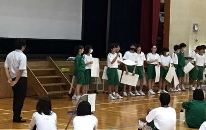 対話ができるようになったグループは、代表が積極的に前に出て発表しました。最後には写真のように何十もの班が発表できました。学年主任も生徒の成長に感動していました。発表後に自然と起きた拍手もうれしかったです。