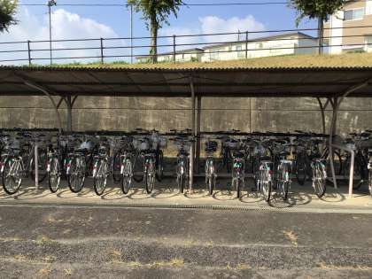 写真のように、自転車について片足スタンドではなく自立型のスタンドをお願いしている関係で、自転車が簡単に将棋倒しになることはありません。