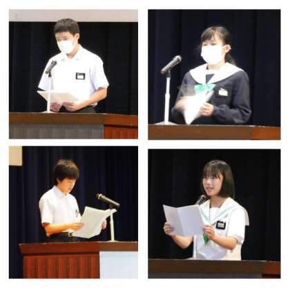 10日(火)の後期始業式では学年の代表生徒が後期への思いを伝えました。