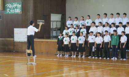 5組の子たちが1組の「春に」を真剣に聞いていました。謙虚に、食い入るように聞く姿勢が目に留まりました。胸の中で燃えるものがあったでしょう。