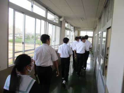 10/16 3-3 これが3年生の心遣い 公開日 2023/10/16 更新日 2023/10/16 校長室から 1年生が合唱の指導会を行っている横を、3−3の生徒が通りかかりました。1年生が気が散らないようにと音を立てずに通り過ぎていました。3年生らしい心遣いでした。