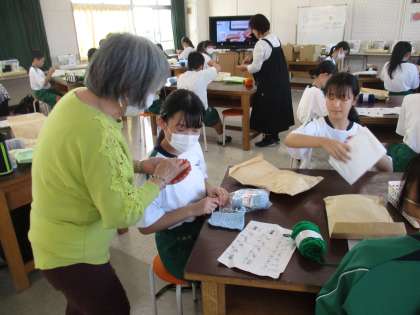 10/17 家庭科部:説明が分かりやすくて! 公開日 2023/10/17 更新日 2023/10/17 生徒の活動 家庭科部は、竜神交流館からの紹介で「アクリルたわし」を作るグループの方から、手芸を習っています。生徒に聞くと「説明が分かりやすくて楽しい」との声が聞こえました。地域の方と交流できる素敵な時間です。