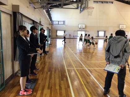 1年生のバスケットボールの授業では、中京大学スポーツ科学部スポーツ教育学科の協力により、授業づくりの研究を進めています。