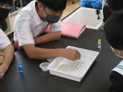 1組が理科の授業をしていました。虹竜祭が間近ですが、授業にはしっかりメリハリがついていました。イオンの実験に興味津々でした。