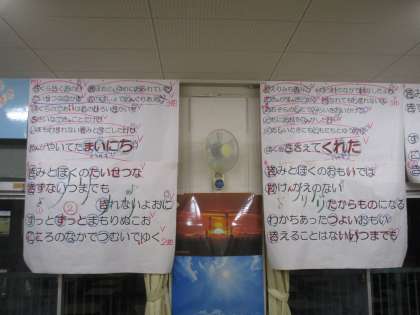 教室には生徒の努力の足跡が見えます。自分たちのクラスが分かるかな?