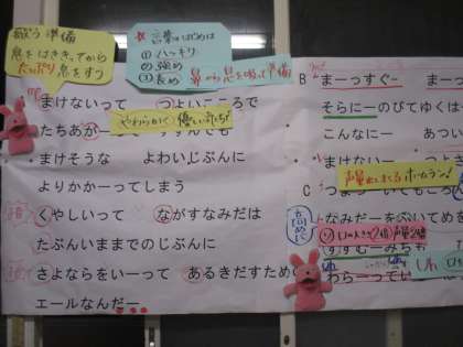 教室には生徒の努力の足跡が見えます。自分たちのクラスが分かるかな?