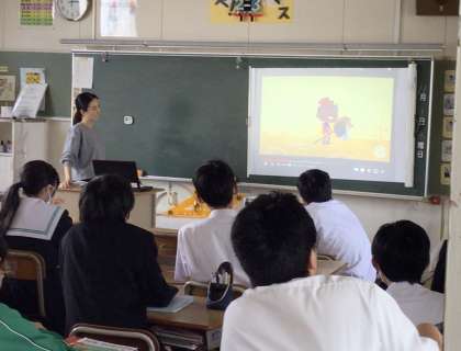 2年生の英語の授業でハロウィンにちなんだ授業をしました。生きた英語ですね。