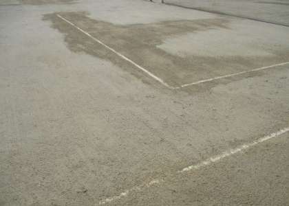 テニスコートの修理が終わりました。予算などの関係で、コートの周りの草の部分だけを掘り起こして整地する予定でしたが、業者の方がコート内も部分的に整地してくださり、さらにラインテープまで貼り直してくださいました。