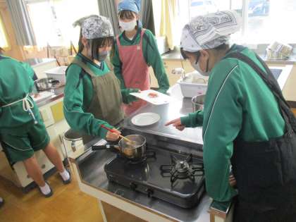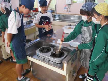 家庭科ではブリを湯引きして表面だけを霜降りにしていました。それだけでも生徒はドキドキです。