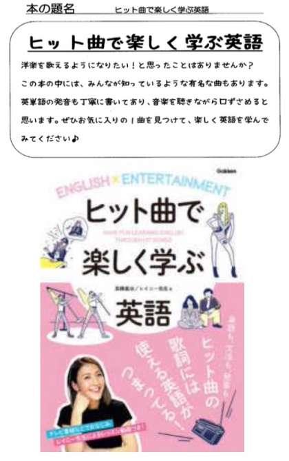 図書委員会が先生のおすすめ本を図書室で紹介してくれています。せっかくですので学校HPでも週末を中心に紹介していきます。先生の名前は隠しています。誰のおすすめか予想してみてください。図書室には先生の名前も掲示されます。