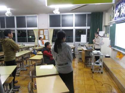 2年生は明日、進路・自然教室説明会があります。生徒下校後、関係の先生が集まって練習をしていました。生徒の皆さんと一緒です。先生たちも、こうやって練習・準備をしています。
