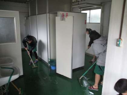 いつ見ても、竜文館のトイレ掃除は額に汗かき熱心です。竜神中で一番古いトイレで、時々野生のタヌキがふんをします。困ったことがたくさんあるのですが、この子達は、このトイレに愛着を感じ、そうじに熱心です。おかげで私もこのトイレが好きになりました。