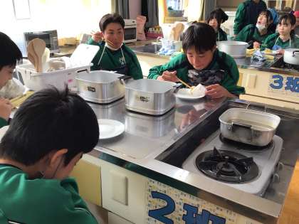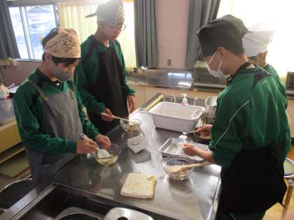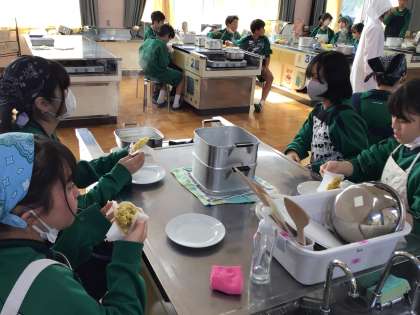 コロナの3年間できないことが多かったですが、調理実習もできるようになりました。2年生は鬼まんじゅうを作ったようです。大さじすり切り一杯などの方法も覚え、できたまんじゅうをおいしそうに食べていました。