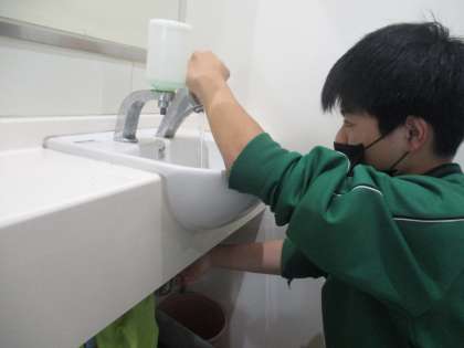 「何か困ったことがある?」と声をかけたら、便器のそうじは困らないけど、手洗い場の下がすぐに汚れるから気になるとのことでした。