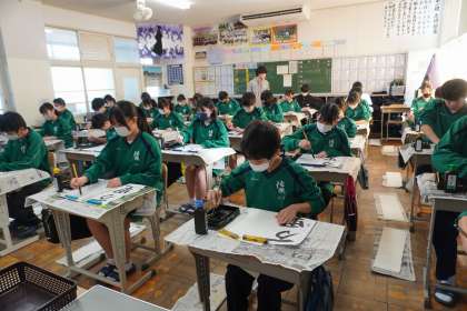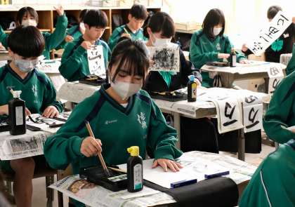 新年早々に、書き初めを学校で行う慣習が三河地区にはあります。日本の伝統文化を体験する貴重な時間です。他の地区ではこうした慣習がないところもあるようです。