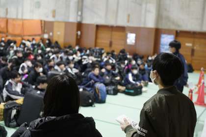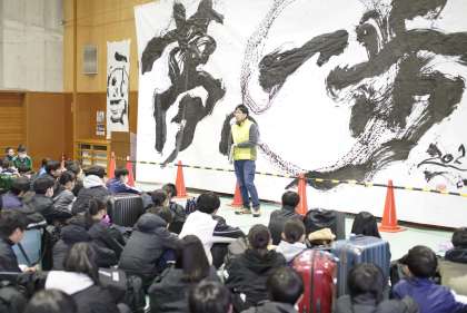 雪が多く、到着に時間がかかりました。30分遅れで入社式をしております。職員の方からは「思いやりのリレー」についてお話をいただきました。今日、とても美しい環境で迎え入れていただきました。最終日に今以上に美しい環境にして、自然の家を後にしたいと思います。