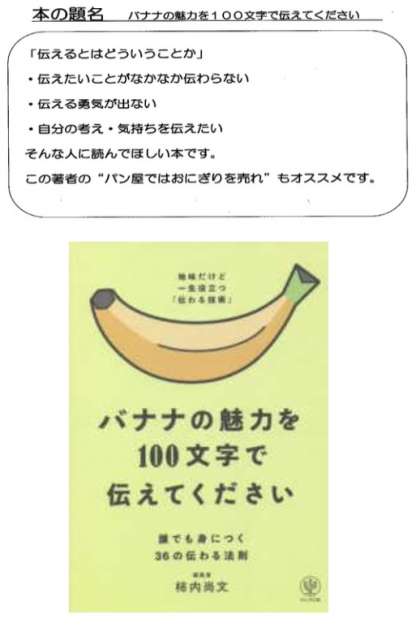 図書委員会企画:おすすめ本17 公開日 2024/01/27 更新日 2024/01/27 生徒の活動 おすすめ本は→→→こちら 図書委員会が先生のおすすめ本を図書室で紹介してくれています。学校HPでも週末を中心に紹介しています。先生の名前は隠していますので誰のおすすめか予想してみてください。図書室には先生の名前も掲示されます。